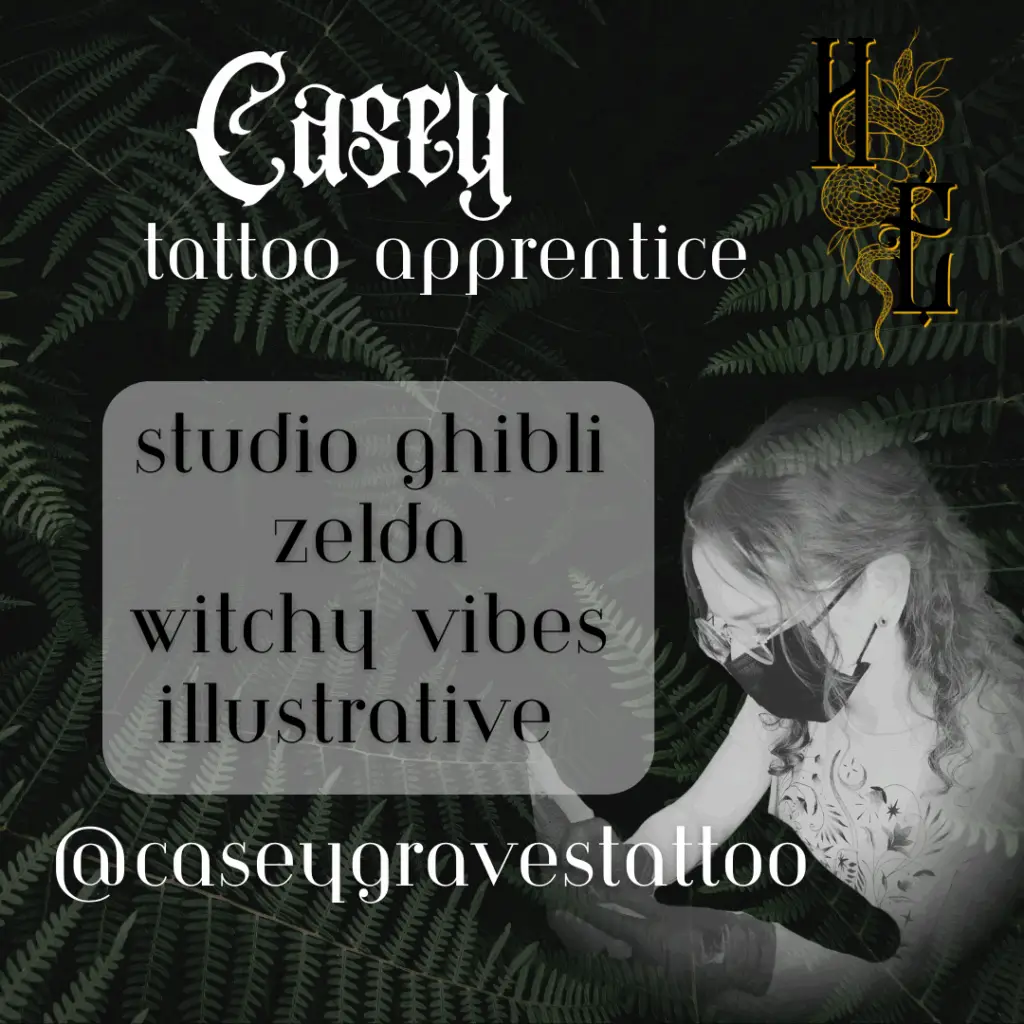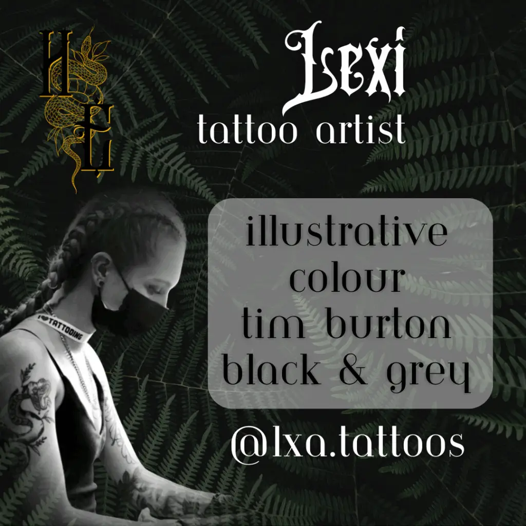 Lexi has been tattooing since March 2022. She loves taking on spooky themes for tattoos. Recently she has been doing more lady-faces and colorful tattoos. She’s super friendly and offers a chill environment for getting tattooed.